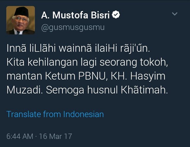 Innalillahi wa inna ilaihi rajiuun, kita telah kehilangan lagi seorang tokoh mantan Ketum PBNU KH Hasyim Muzadi, Allahummaghfir Lahu warhamhu wa ‘afihi wa’fu ‘anhu.
