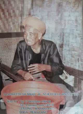 Kalau berbicara sosok waliyullah dan ulama’ yang zuhud dan penuh karismatik pasti tak lepas dari sosok beliau Simbah Kyai Haji Noer Durya Bin Sayid,,