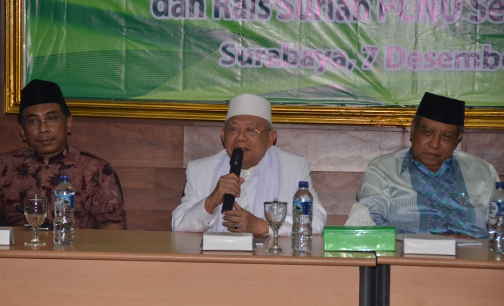 Hal itu disampaikan Rais Aam PBNU KH Ma’ruf Amin pada Halaqah dan Silaturrahim Rais Syuriyah dan pengasuh pesantren se-Jawa Timur di kantor PWNU Jawa Timur di Jalan Masjid Al Akbar Timur 9 Surabaya, Rabu (7/12).