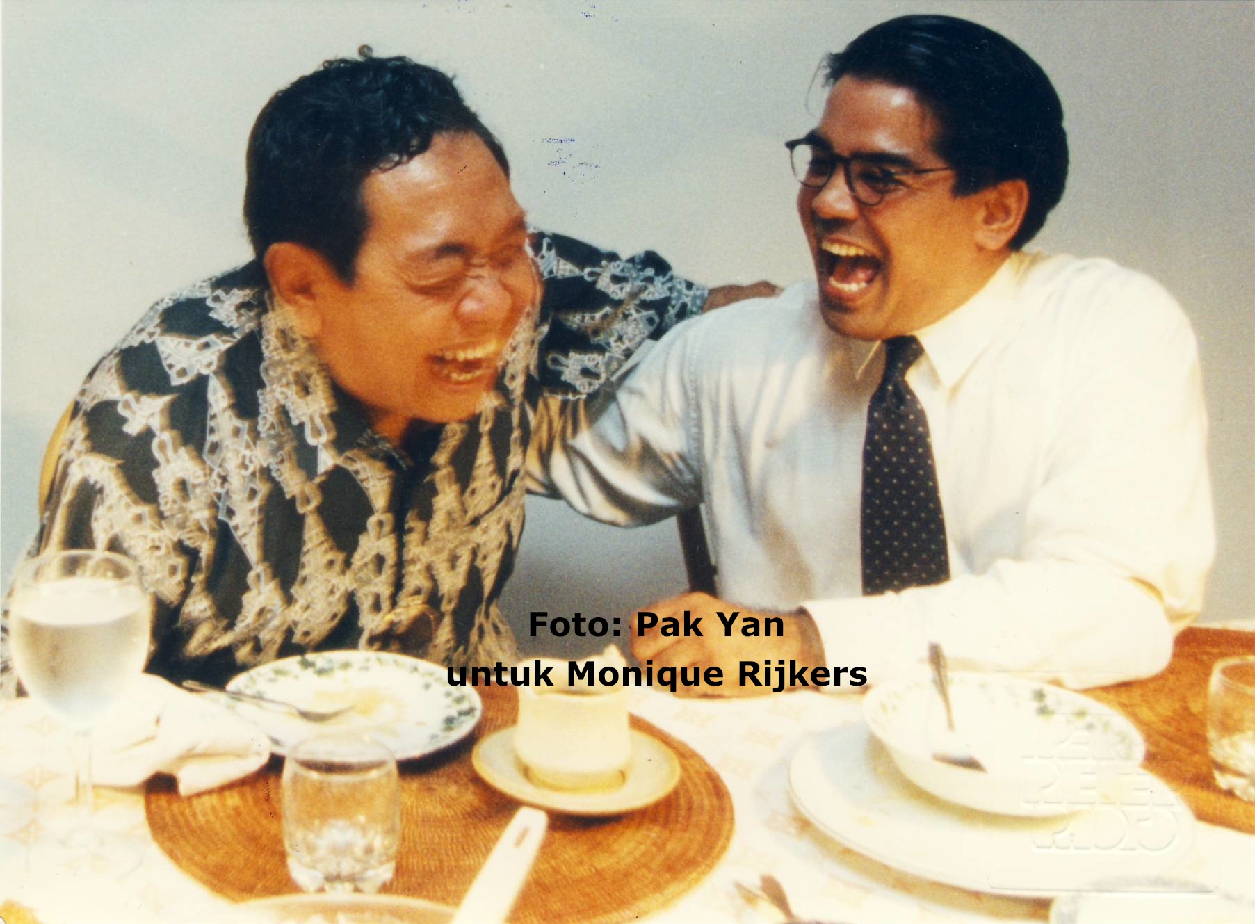Saya yakin Gus Dur yang humoris, pasti sering bercanda dengan sahabatnya ini. Salah satu foto memperlihatkan ketika keduanya tertawa bersama.