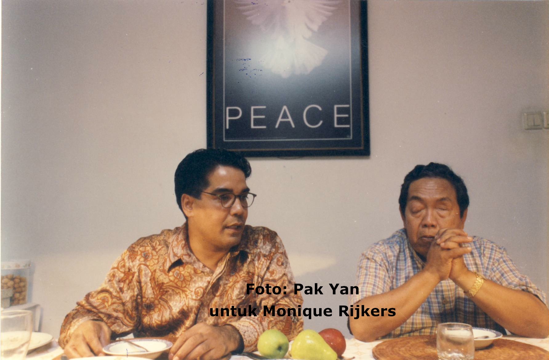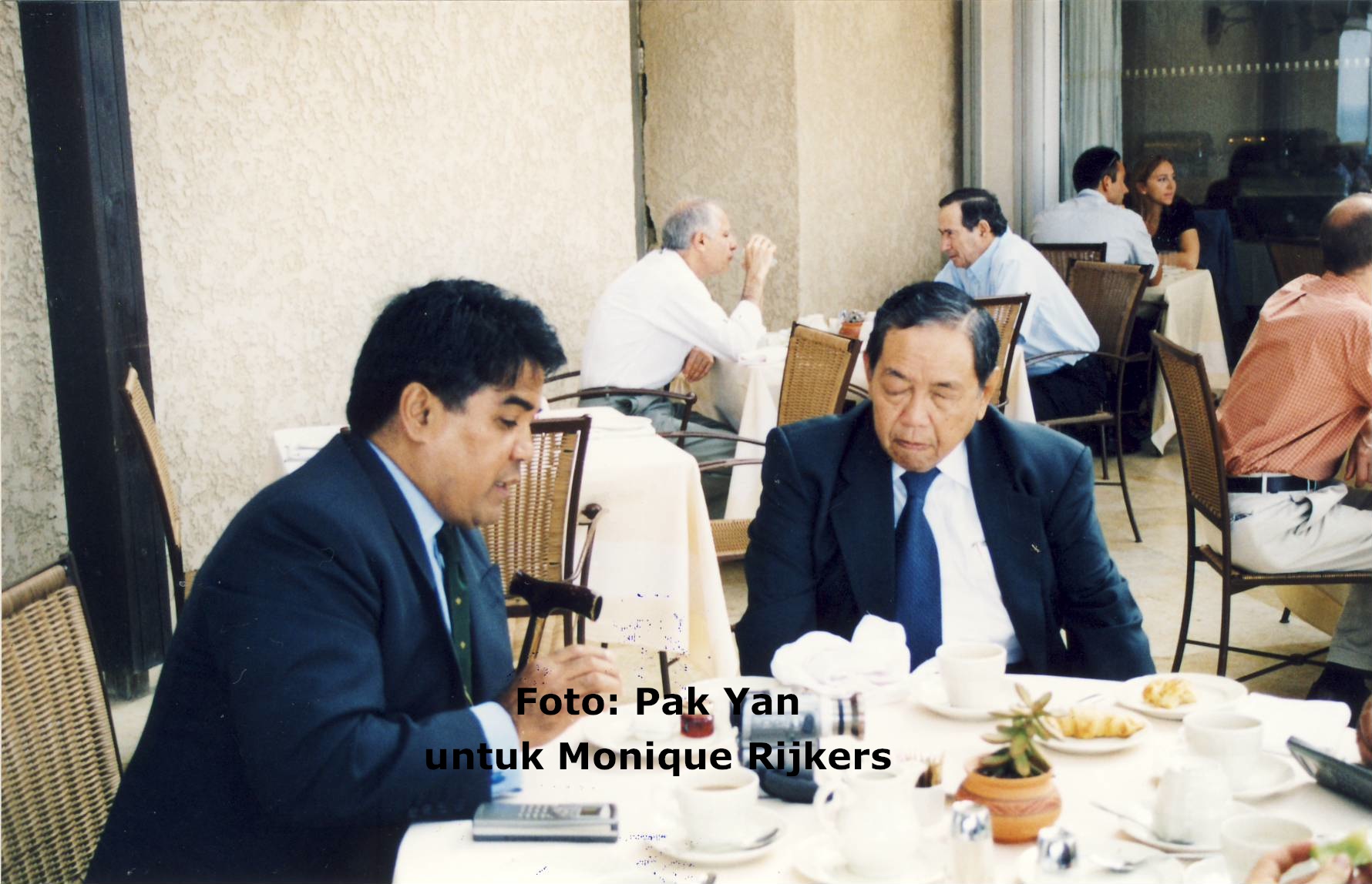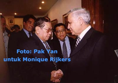 Sepertinya Pak Yan dan Gus Dur kerap bepergian bersama hingga ke luar Indonesia. Pak Yan mengaku mengajak Gus Dur ke Belanda. “Dia naik sepeda dengan aku. Dia bisa naik sepeda ya,” tutur Pak Yan. Keduanya berada di Belanda karena Gus Dur meminta pertolongan Pak Yan untuk mempertemukan dengan seorang dari Kerajaan Kuwait (nama ada pada saya). Pak Yan mengurus pertemuan tersebut dan mengatur pertemuan di Belanda. Selama di Belanda, mereka kerap bersepeda bersama, berdiskusi dan tertawa sampai air mata keluar. Selain mempertemukan dengan orang Kerajaan Kuwait itu, dari foto-foto yang lain, ada beberapa tamu dari luar negeri yang juga bertemu Gus Dur atas peran Pak Yan. Salah satu foto yang saya peroleh adalah pertemuan dengan Presiden Israel periode 2000-2007 Moshe Katzav, seorang Yahudi kelahiran Iran.