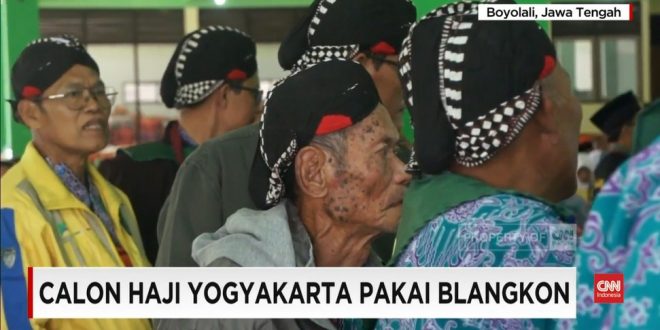 Calon haji dari Kabupaten Gunung Kidul, Yogyakarta, memilih menggunakan blankon sebagai pengganti kopiah. Hal ini dilakukan oleh ratusan jemaah haji pria dari kloter 23 seperti nampak di embarkasi Boyolali, Jawa Tengah.